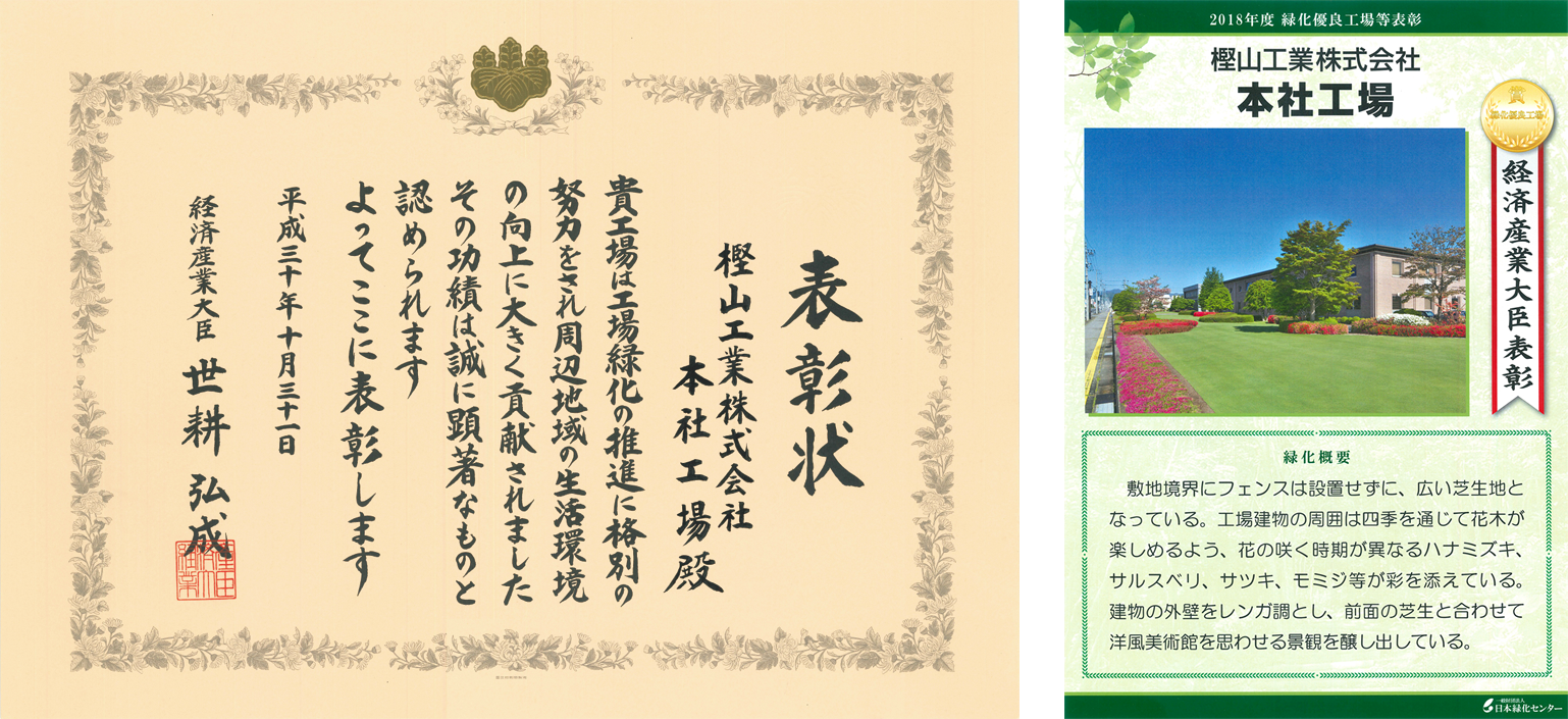 2018年度緑化優良工場等経済産業大臣賞を受賞!